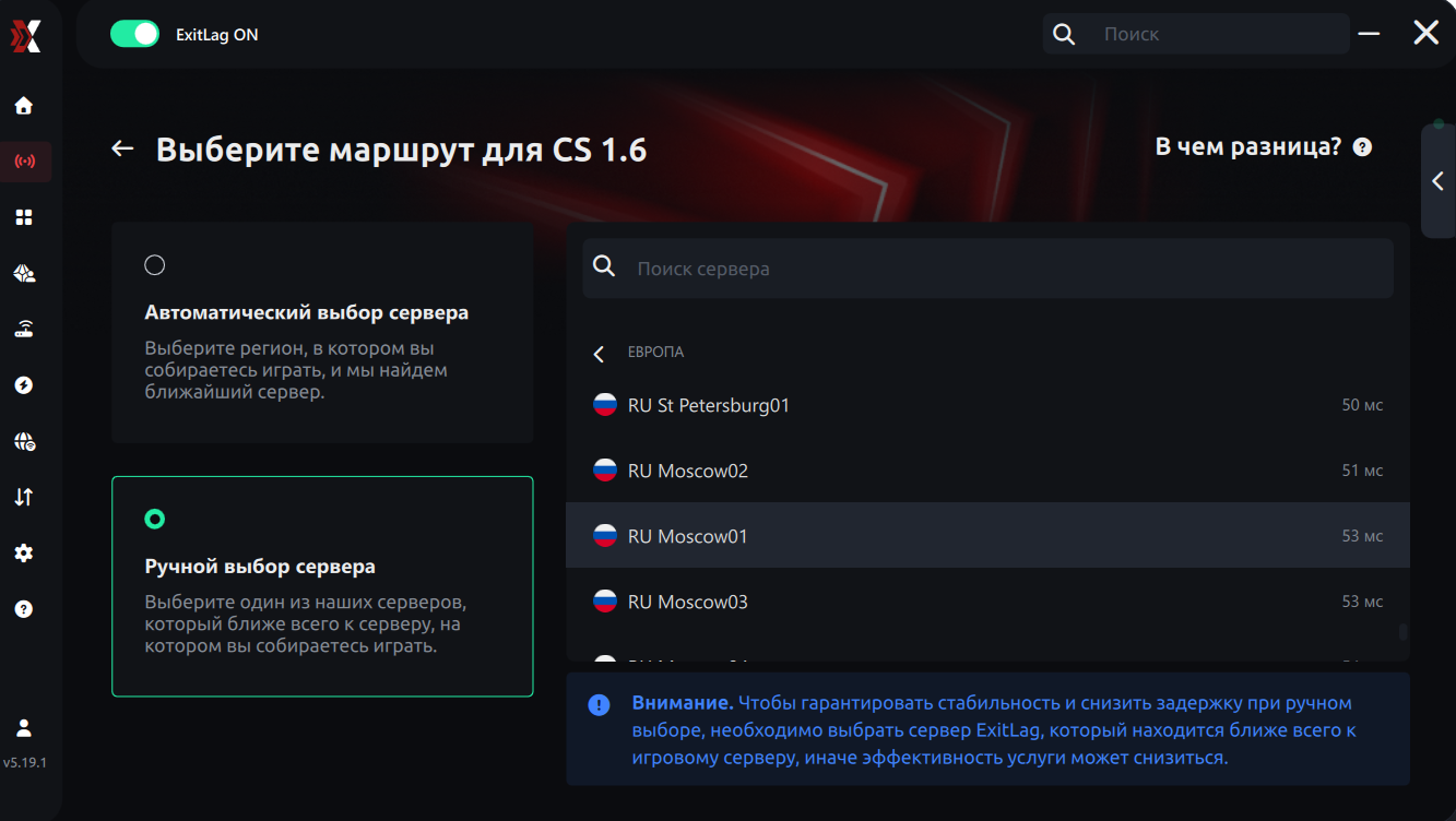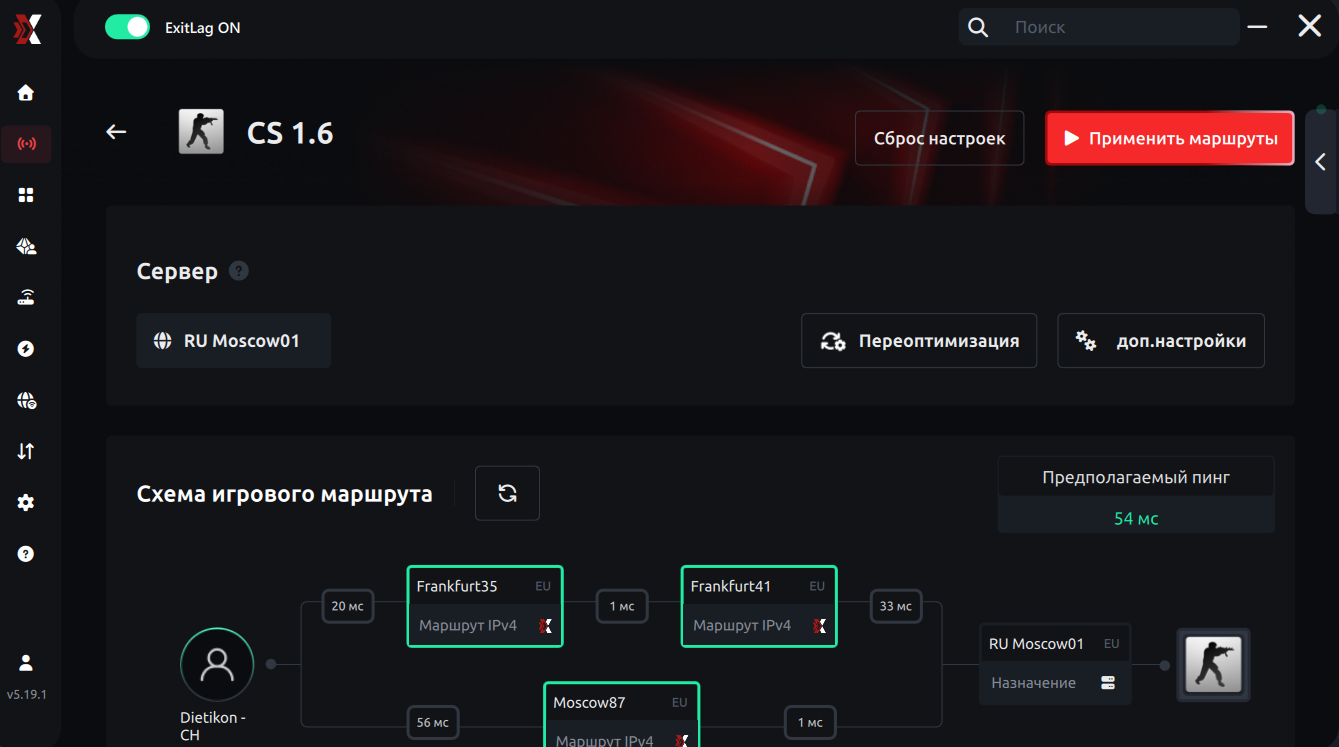 ExitLag — это программа для оптимизации интернет-маршрута до игровых серверов.