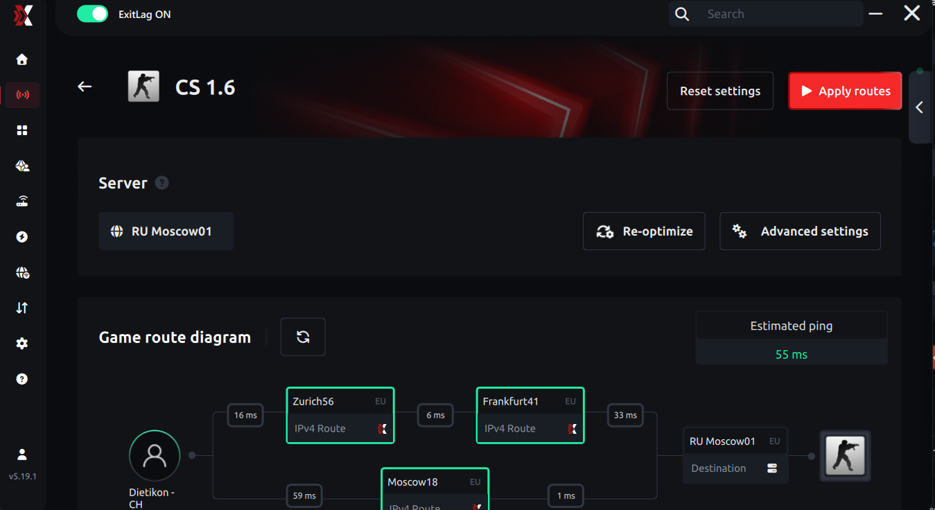 ExitLag is a tool that optimizes your internet connection to game servers.
